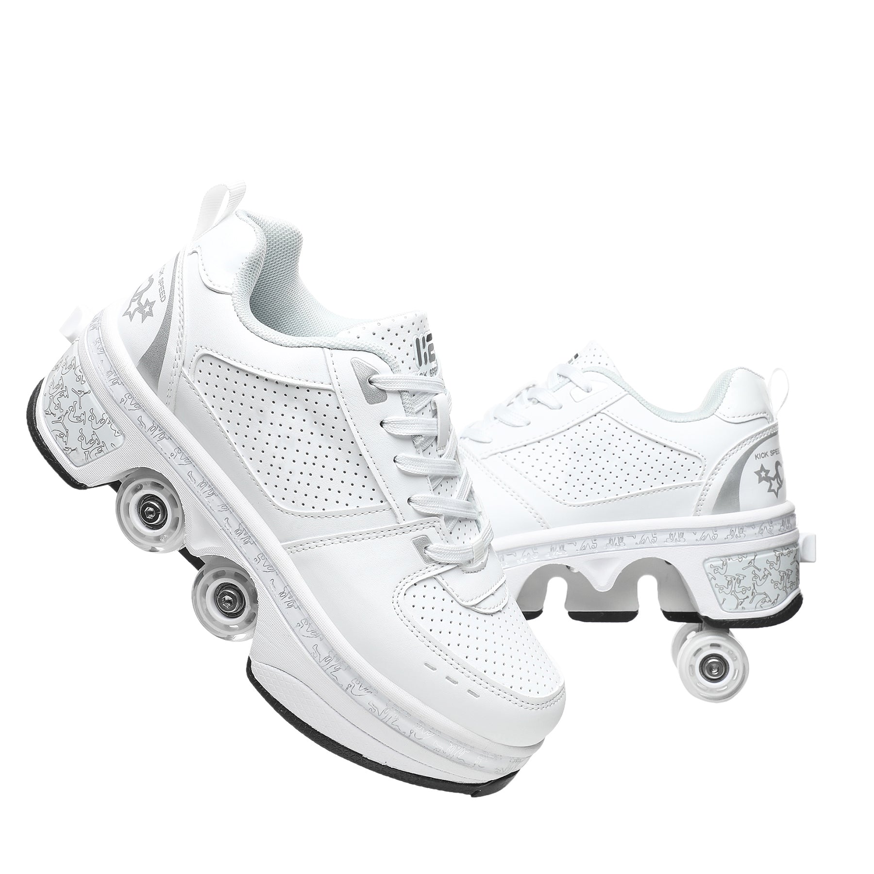 Unsere Rollschuhschuhe LED Light Edition wurden speziell für alle Rollschuhliebhaber entwickelt. Bequeme Sneaker mit Pop-up-Rädern und LED-Licht eignen sich zum Laufen, Walken und Skaten. Sie brauchen nicht mehrere Schuhe, um das Beste aus Ihrem Leben zu machen. Machen Sie einen Spaziergang oder joggen Sie, und wenn Sie zum Skaten bereit sind, verriegeln und entriegeln Sie einfach den Schalter und bringen Sie die Räder ins Rollen und gleiten Sie in Ihre Richtung.