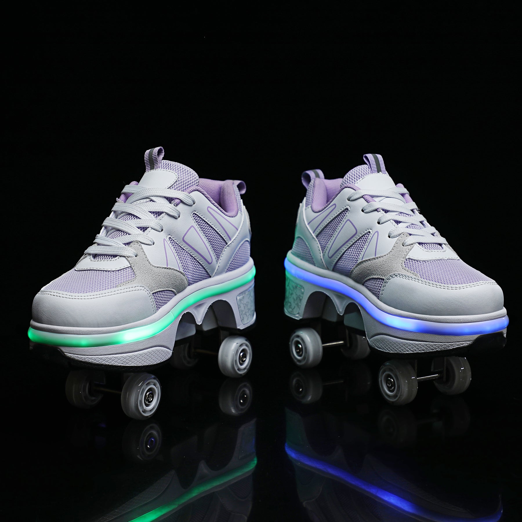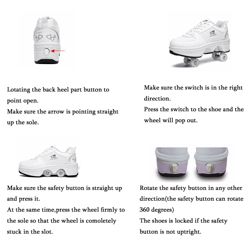 Unsere Rollschuhschuhe LED Light Edition wurden speziell für alle Rollschuhliebhaber entwickelt. Bequeme Sneaker mit Pop-up-Rädern und LED-Licht eignen sich zum Laufen, Walken und Skaten. Sie brauchen nicht mehrere Schuhe, um das Beste aus Ihrem Leben zu machen. Machen Sie einen Spaziergang oder joggen Sie, und wenn Sie zum Skaten bereit sind, verriegeln und entriegeln Sie einfach den Schalter und bringen Sie die Räder ins Rollen und gleiten Sie in Ihre Richtung.